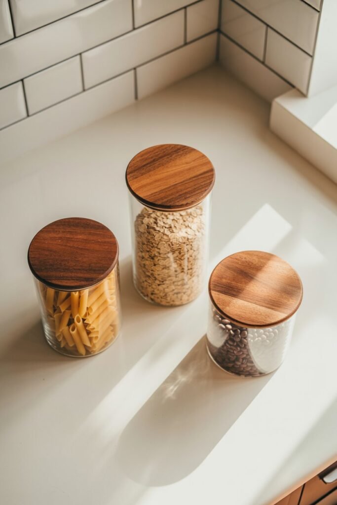 They’re not just functional — they’re décor. I love the contrast of warm wood lids with clear glass. Everything feels fresh, intentional, and Pinterest-worthy.