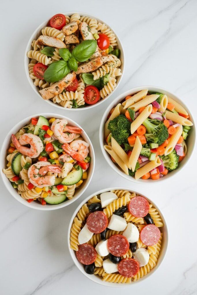 If you’re making this ahead of time, prep everything separately. Cook and cool the pasta, chop the veggies, and keep your dressing ready. Then, just before serving, toss it all together. This keeps everything vibrant and prevents it from getting mushy.