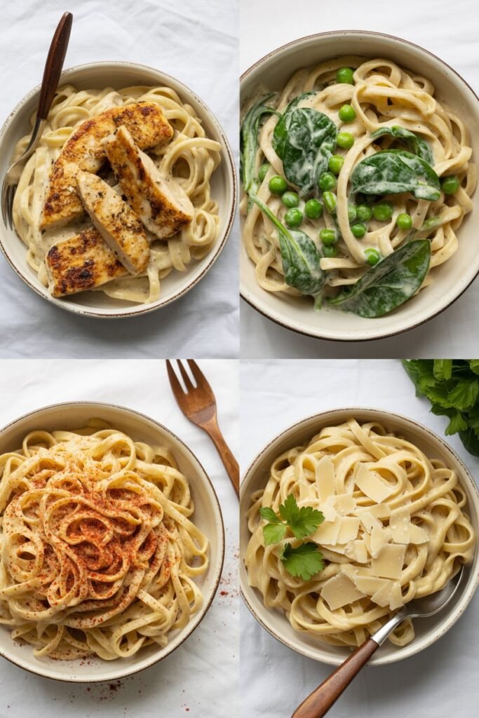 Add Protein – Turn this creamy garlic pasta into a heartier meal by tossing in grilled chicken, sautéed shrimp, or crispy bacon. Each adds its own flavor and texture, making the dish perfect for lunch or dinner.