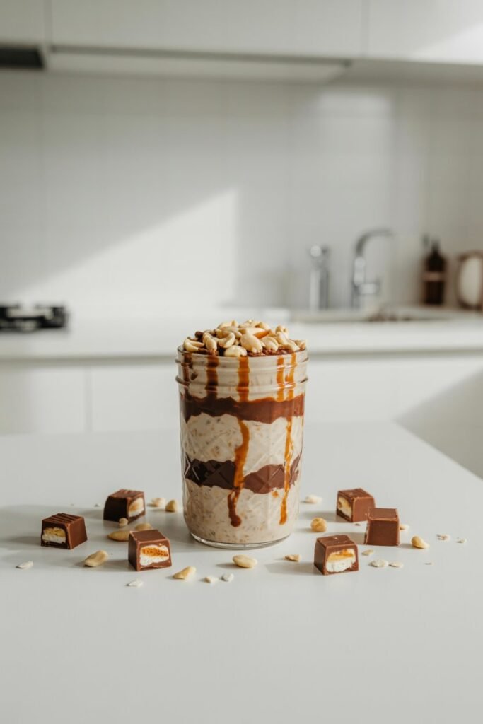By morning, the oats have softened into a creamy, pudding-like consistency infused with rich chocolate and peanut flavor.