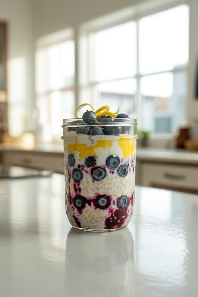 In the morning, uncover and give it a gentle stir. Add a few extra blueberries and a sprinkle of lemon zest on top for a fresh, colorful presentation.