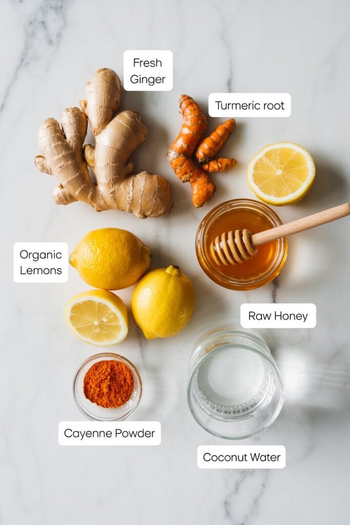 One of the best things about spicy ginger wellness shots is how simple the ingredients are. You probably already have most of them in your kitchen.