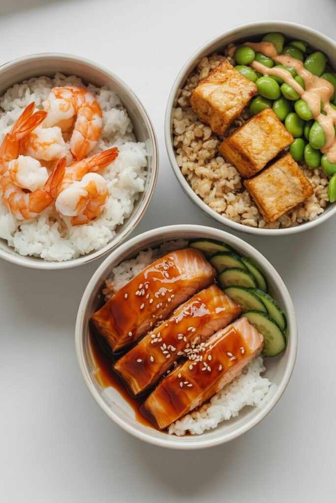 For a protein switch, teriyaki salmon is rich and satisfying, and tofu works beautifully if you want a plant based option that still feels hearty.