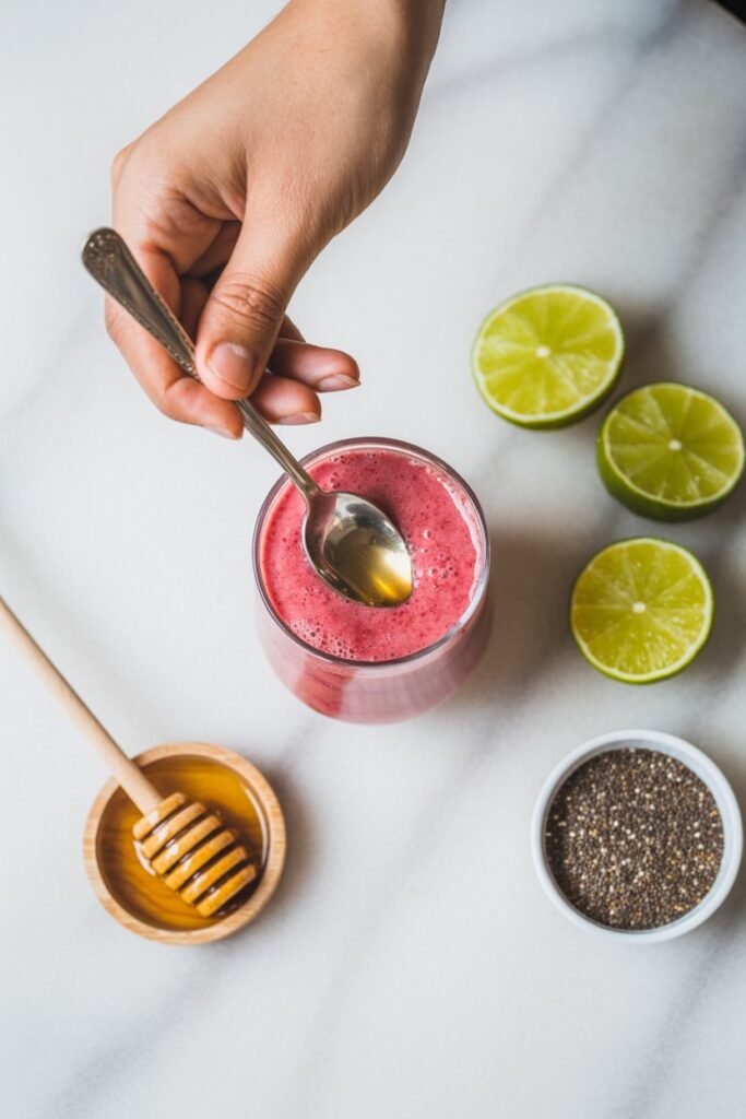 Take a small sip and decide if it needs more sweetness or brightness. Add honey or maple syrup for gentle sweetness, or a squeeze of lime juice for a fresh tropical note.